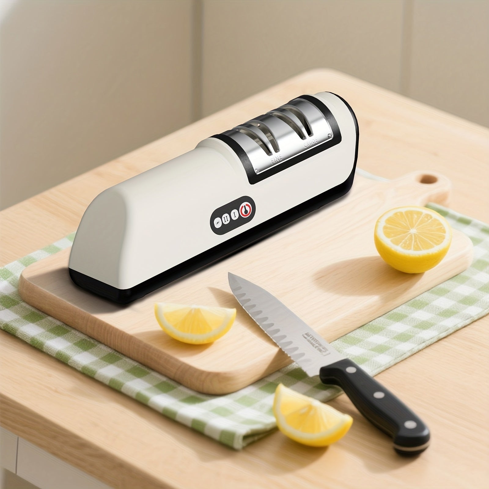 [Compatible with All Tool Types] This sharpener is designed to be versatile, supporting various tools—from chef's knives, boning knives, peeling knives to kitchen scissors. One device keeps all your tools sharp as new.