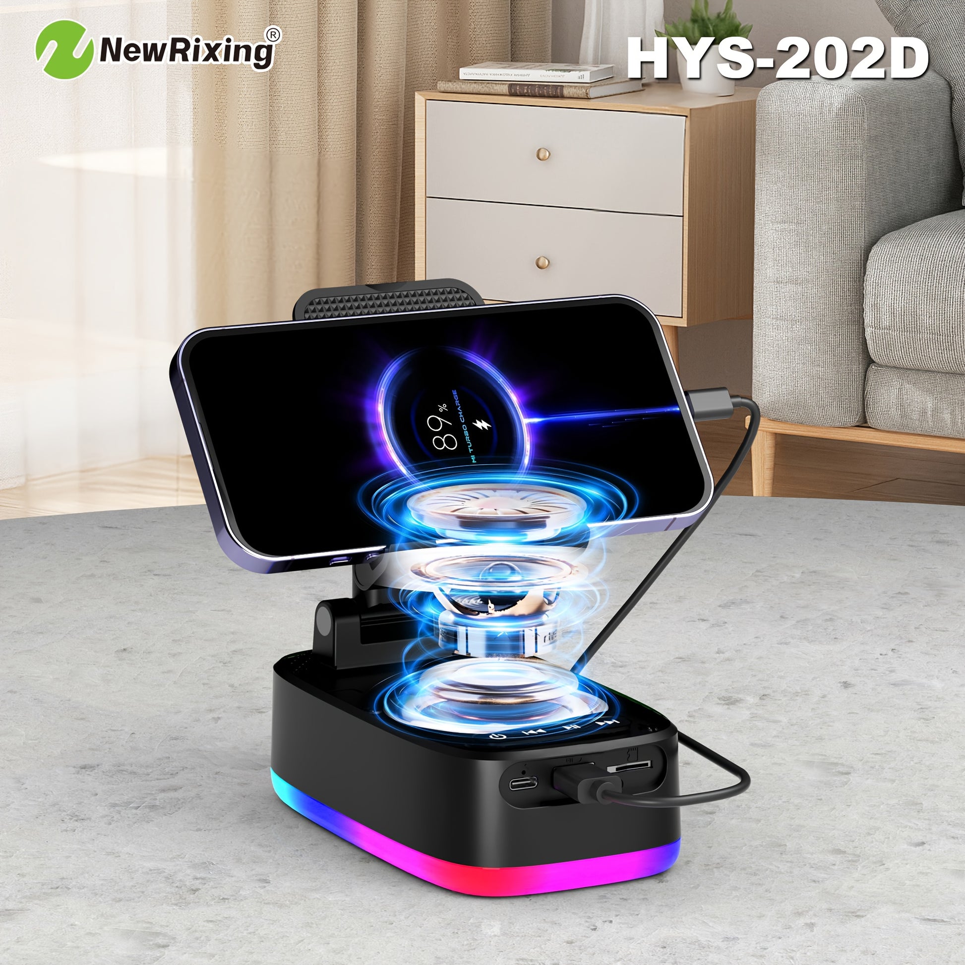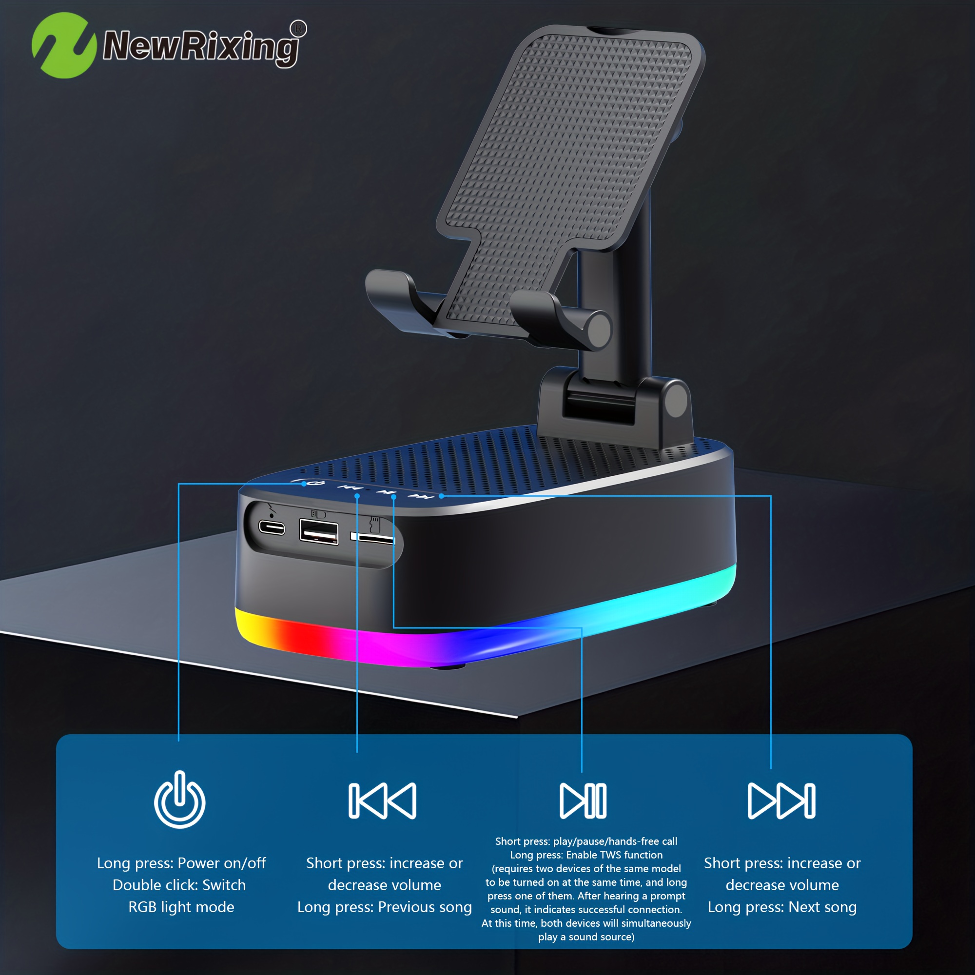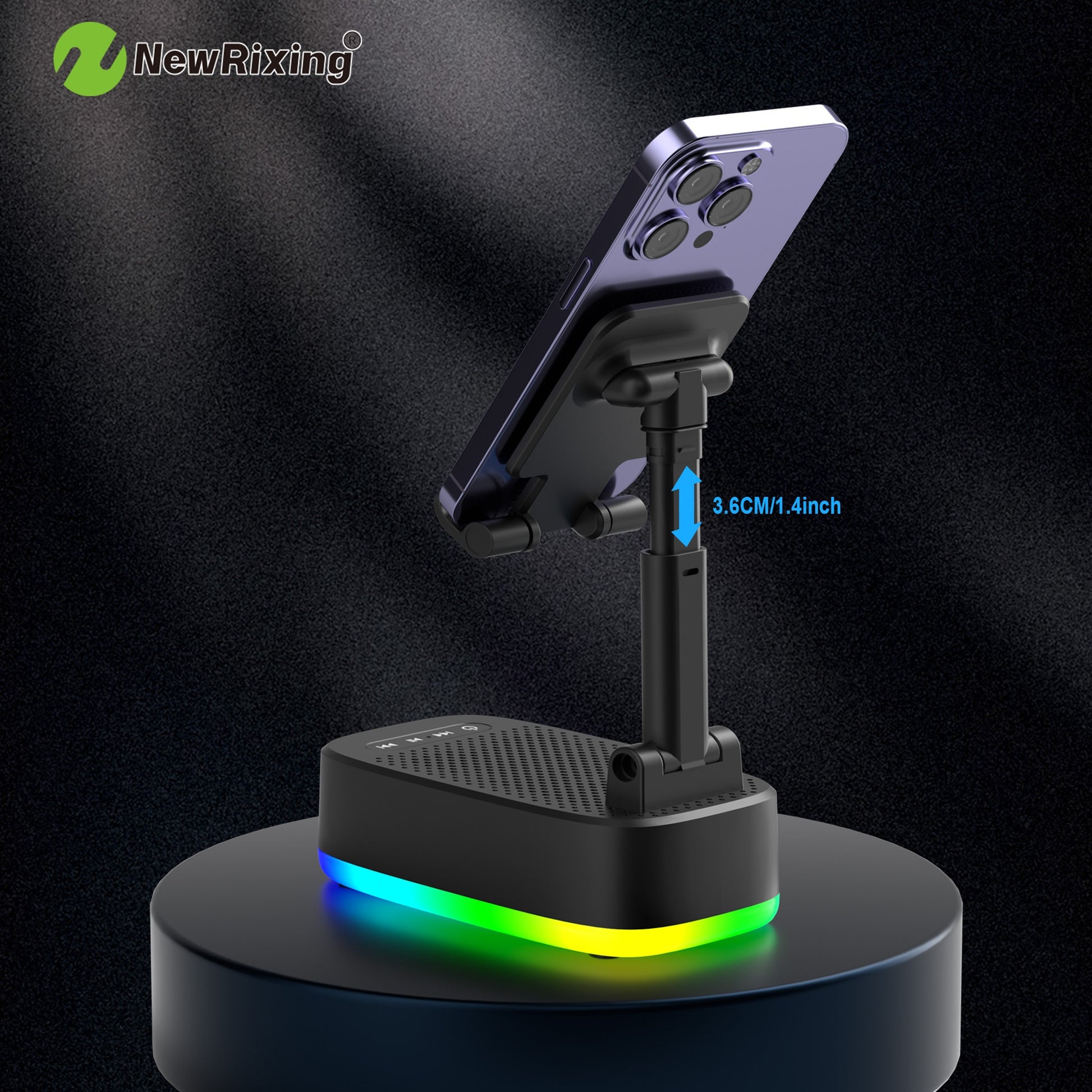 Boxe wireless NewRixing de 6 W cu suport pentru telefon, asociere duală, baterie de 1800 mAh, baterie externă mobilă de urgență