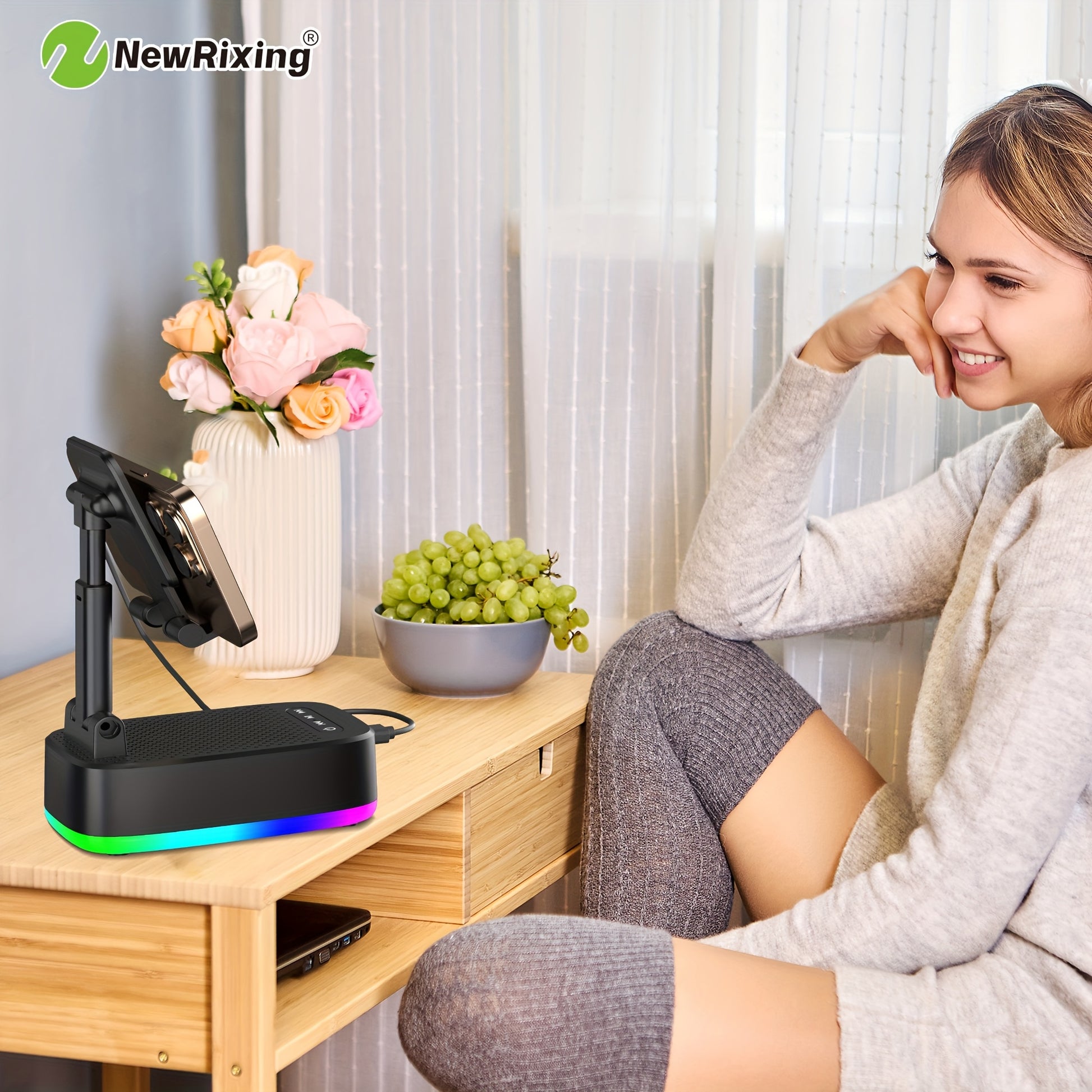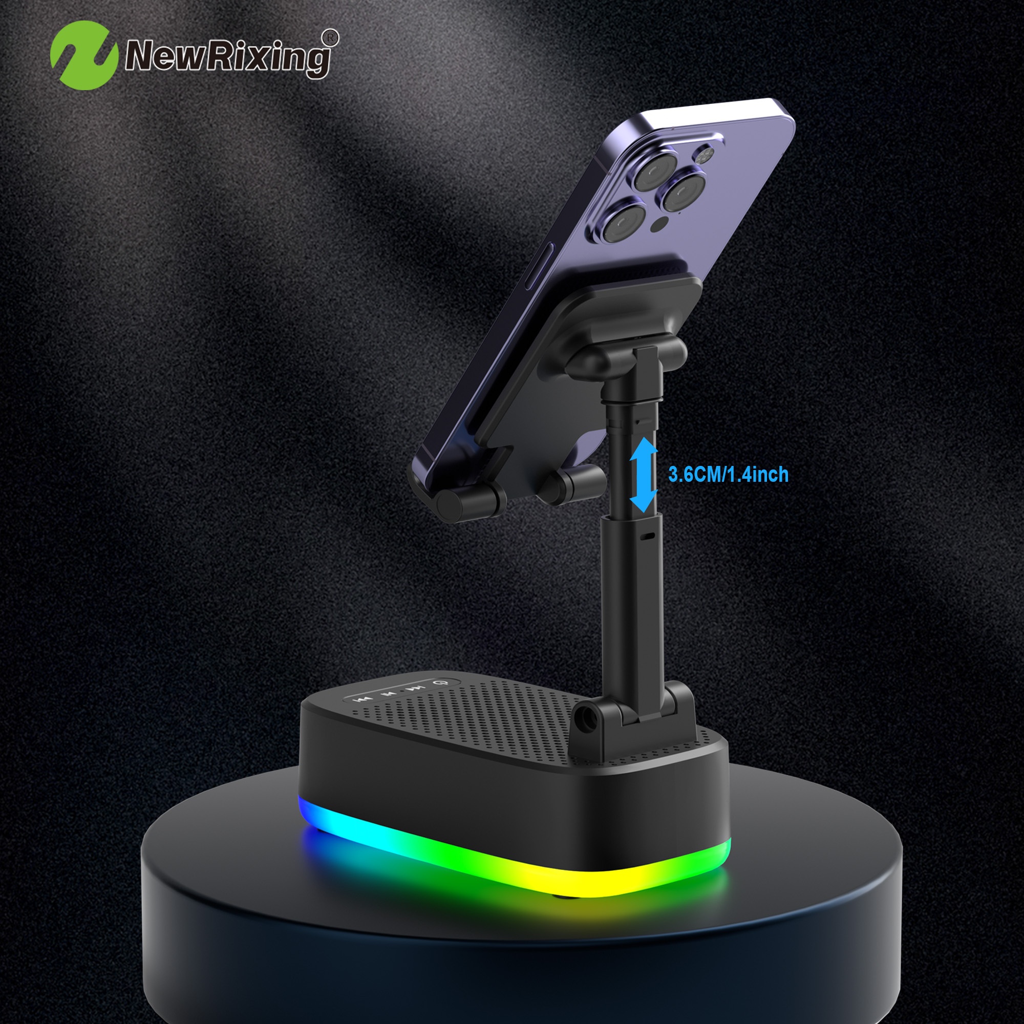 Boxe wireless NewRixing 6W cu suport pentru telefon Boxă portabilă BT de 6W cu suport pentru telefon, suportă BT, apeluri hands-free, USB, card TF, baterie externă de urgență, TWS, boxă wireless pentru telefon Baterie de 1800mAh, baterie externă de urgență, suportă până la 6 ore de redare Boxe wireless cu suport pentru telefon, butoanele suportă funcții multiple Suport pentru telefon mobil suportă reglarea înălțimii Suport pentru telefon mobil suportă reglarea unghiului Boxă pliabilă cu suport pentru telefon wireless, calitate HiFi, stereo puternic și bas puternic, potrivită pentru vizionarea de filme, videoclipuri etc.