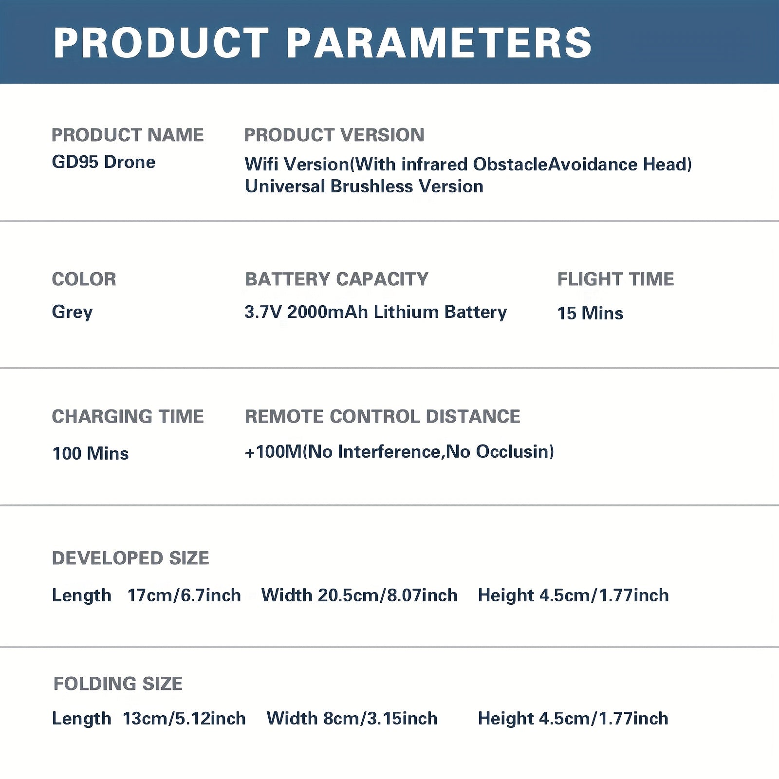 Grupă de vârstă aplicabilă: 12 ani+ Proprietăți baterie: Baterie reîncărcabilă Marcă: GLOBAL DRONE Tip suport cameră: Gimbal cu 1 axă Tip control: Telecomandă Caracteristică: Stabilizare imagine; Evitarea obstacolelor GPS: nu ID articol: GU1499890 Material principal: ABS Distanță maximă de control al semnalului (M): 100 Altitudine maximă de zbor (metri): 30 Viteză maximă de zbor pe orizontală (m/s): 10 Greutate maximă la decolare (g): 10 Număr de camere: cameră duală Tensiune de funcționare: ≤36V Nivel de calificare operator: Începător Mod de alimentare: Încărcare USB Baterie reîncărcabilă: Baterie litiu-polimer Durata de viață a unei singure baterii: 15-20 de minute Caracteristici speciale: Fără caracteristici speciale Rezoluție captură video: 480p Tehnologie de comunicare wireless: Wifi